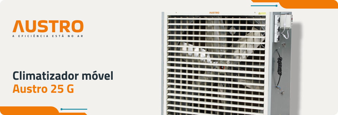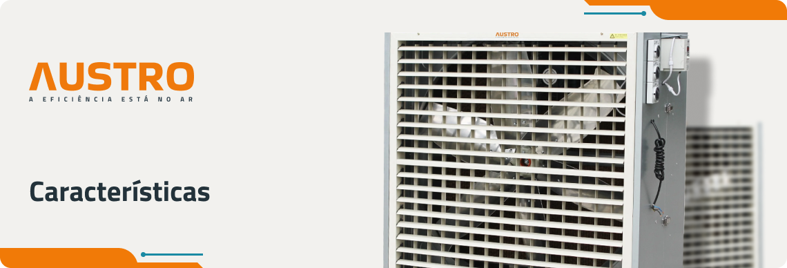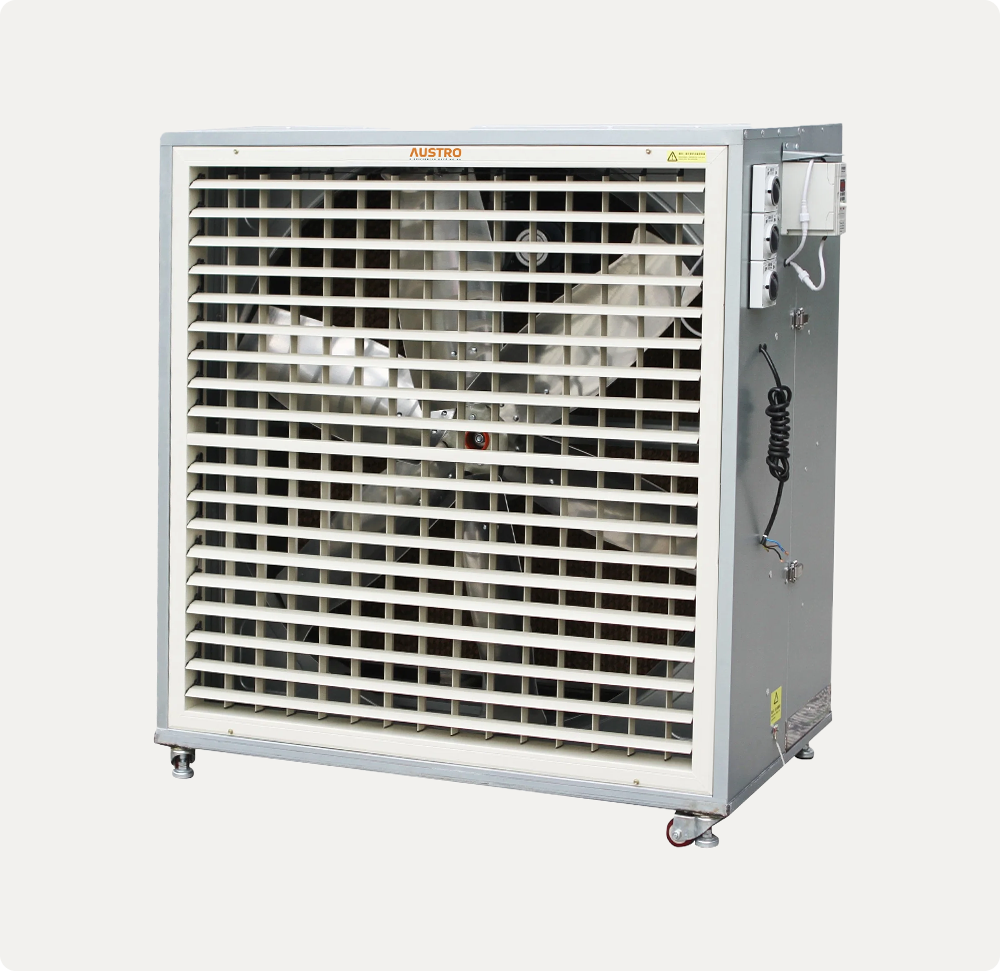 Os climatizadores industriais AUSTRO possuem um poderoso fluxo de ar de longo alcance e larga cobertura.
